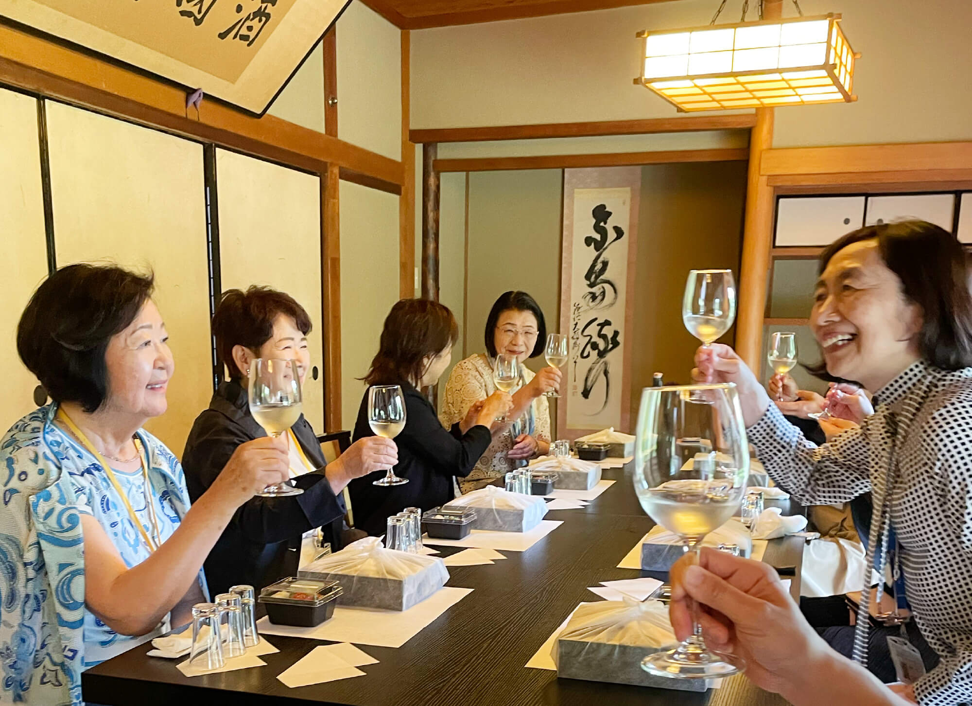 昼食は、江戸時代末期に建てられた民家を移築した「静和館」にて、地元の旬の素材を使ったお料理とお酒のティスティングを楽しむ贅沢なひととき。お酒と料理の絶妙なマリアージュに魅了され、ついつい杯を重ねてしまった方も!?