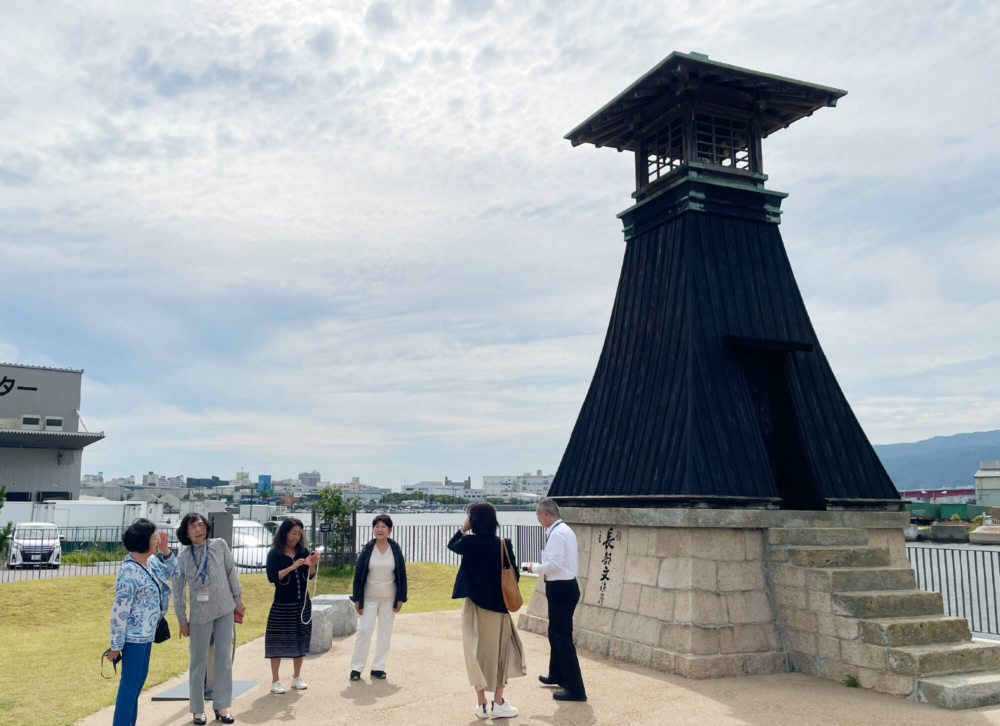 午後は、5代目当主が私費を投じて建てられたという、日本最古の木造灯台「今津灯台」に。今も当時の姿そのままに佇む灯台は、地域を照らし続けてきた歴史の象徴であり、大関様の地域に根ざした姿勢を体現しているかのようでした。